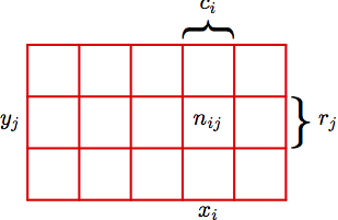 $ p(x_i, y_j) = $ $ \frac{n_{ij}}{c_i}$ $\frac{c_i}{N} $
